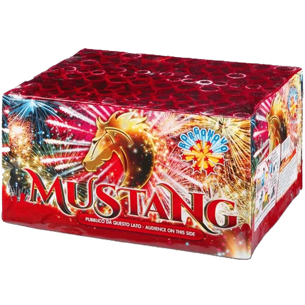 Το πυροτέχνημα Mustang, 106 βολές είναι ένας εκρηκτικός συνδυασμός ισχύος, λάμψης και θεαματικής διάρκειας διαθέτει πλάγιες αλλά και κάθετες βολές — σχεδιασμένο για να καθηλώνει το κοινό με μια αξέχαστη επίδειξη φωτός και ήχου. Ακολουθεί μια φανταστική περιγραφή, σαν να το βλέπεις live: