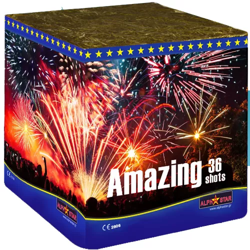 Το Amazing είναι ένα εναέριο πακέτο πυροτεχνημάτων με 36 συνολικές βολές, σχεδιασμένο για να δημιουργεί εντυπωσιακά εφέ φωτός και χρώματος στον ουρανό κατά την εκτόξευση.